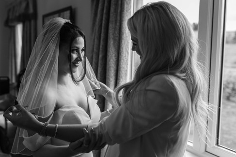 I arrived at noon, where I found Nicole in the Haddon suite getting ready with her Mum and her Grandma. Alaina and Hollie were putting the final touches to Nicole's hair and make up when Charlotte arrived with the wedding dress, giving it a final steam before dressing the beautiful bride.